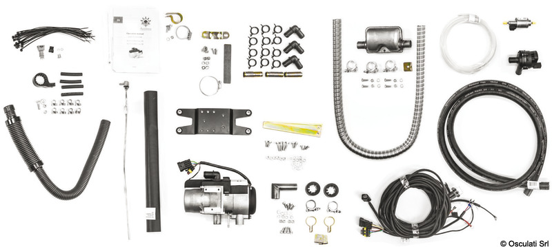 Die AUTOTERM Flow Flüssigkeitsheizer sind eine versatile und kompakte Lösung für Schiffe und Fahrzeuge mit einer thermischen Leistung von 5 kW. Entworfen, um Kabine und Innenräume zu heizen. Verfügbar für Benzinsysteme (12V) und Dieselsysteme (12/24V). Das Kit enthält alles Notwendige für die Installation des Kessels. Kontrollpanel 50.251.01 muss separat erworben werden, um den Kessel zu bedienen. Für den Abschluss der Installation ist es außerdem notwendig, das Rohr für den Umlauf von Heißwasser (Durchmesser 16mm Typ 17.740.16) und die lokalen Luftverteilungen je nach Bedarf zu kaufen.Im Lieferumfang sind folgende Zubehörteile im Kit enthalten: Wärmeisolierung; Kraftstoffpumpenklemme mit Gummigarnitur; Kraftstoffpumpe; Elektrische Verkabelung für die Pumpe; Elektrische Verkabelung für die Steuerpaneele; Luftansaugrohr mit Filter; 1 Meter langes Auspuffrohr (optionale Adapter: 50.255.01/02/03); 5,5 Meter langes Nylon-Kraftstoffrohr; Nylon-Kraftstoffrohrabdeckung; Montagehalterung für die Pumpe; Schalldämpfer mit Montagekit; Wärmeschutz für Auspuffrohr; Elektrische Flüssigkeitspumpe; Kühlmittelschlauchanschluss; L-förmiger Auspuffrohradapter; 2 Meter langes Kühlmittelschlauch.