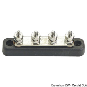 Sockel aus hochisolierendem Kunststoff. Schiene aus vernickeltem Kupfer, Schrauben und Muttern aus Edelstahl. volt 12/48.