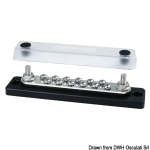 Mit durchsichtigem Deckel. Sockel aus Technopolymer und Bus-Stange aus verzinntem Kupfer.