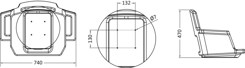 Aus weißem Polyethylen, mit abnehmbaren Kissen aus weißem Skai. Absolut witterungsbeständig und daher besonders für die flybridge geeignet. Sehr bequeme Form, Sockel mit Beschlägen aus rostfreiem Edelstahl zur Kombination mit allen im Katalog geführten Drehfüßen. Mit 8 Gewindebuchsen aus Messing für die Montage von Standfüßen und Stuhlkufen.