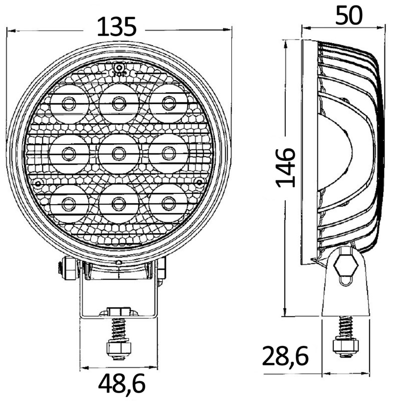 Προβολέας LED HD 9x3W για προσανατολίσιμο roll-bar