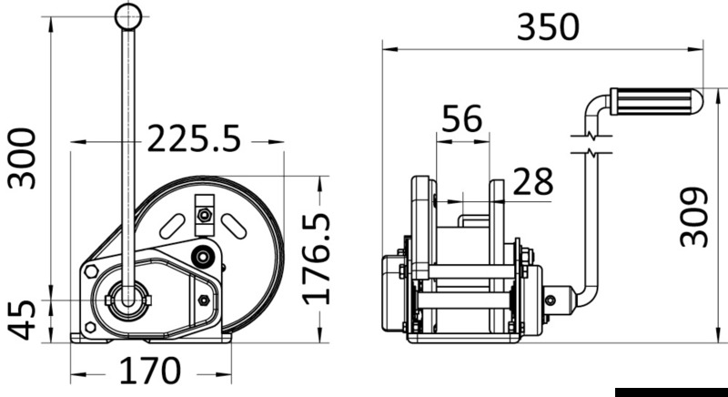 Ο μηχανισμός αυτομπλοκαριζόμενος (ενεργοποιείται με ελάχιστο φορτίο 25 κιλών) επιτρέπει τη χρήση του βαραντζαλιού με απόλυτη ασφάλεια. Κανένα εξωτερικό γρανάζι. Κέλυφος από ατσάλι ψευδαργύρου-χρωμίου και βαμμένο με εποξειδικές σκόνες.