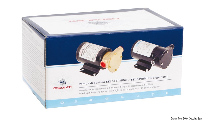 Αυτοεκκίνησης με πτερωτές νεοπρενίου. Στεγανή σύμφωνα με το πρότυπο ISO 8846 (μπορεί να τοποθετηθεί στον θάλαμο του κινητήρα) .- Έκδοση A: Σκελετός κινητήρα σε σμάλτο ηλεκτροφόρησης - Έκδοση Β: Μοντέλο MKII με σώμα αντλίας από θερμοσκληρυνόμενη ρητίνη ενισχυμένη με υαλοβάμβακα + εσωτερικά ένθετα από ανοξείδωτο χάλυβα.- Έκδοση Α: Ηλεκτροφορητική επίστρωση κινητήρα.- Έκδοση B: Μοντέλο MKII με σώμα αντλίας από θερμοσκληρυνόμενη ρητίνη ενισχυμένη με ίνες γυαλιού + εσωτερικά εισαγωγή από ανοξείδωτο χάλυβα.