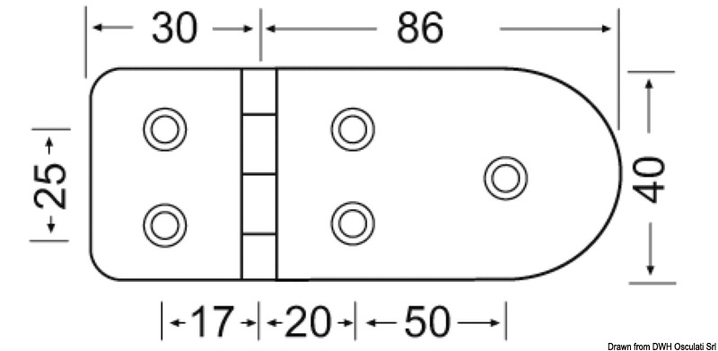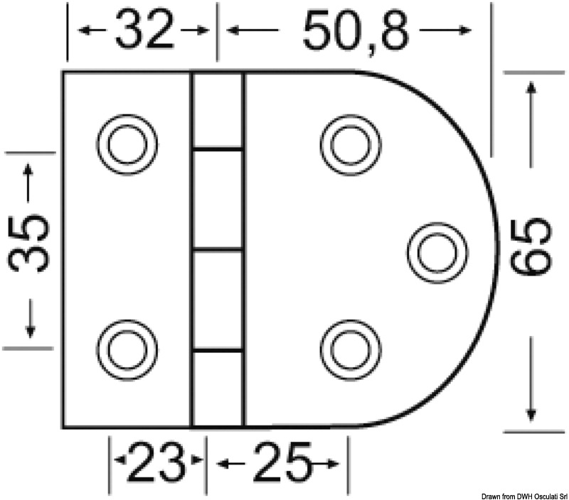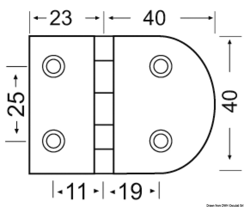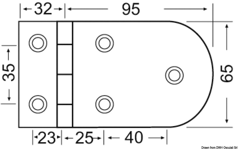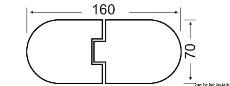 Από ανοξείδωτο χάλυβα AISI 316 μικροχύτευσης, στίλβωσης καθρέπτη, άρτιο φινίρισμα μεγάλης στιβαρότητας, πάχους 4 mm. Διατίθεται σε τυποποιημένη έκδοση:"A", πρότυπο, με άνοιγμα 180°; "B" με άνοιγμα 95°, αντεστραμμένος κόμπος και εντελώς λεία επιφάνεια.Διαθέσιμο στις ακόλουθες διαστάσεις.