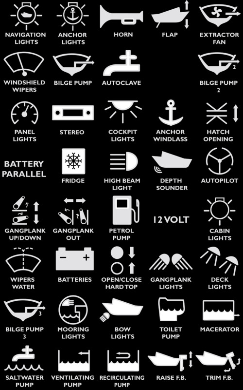 Επιτραπέζιο γυάλινο αφής με φωτιζόμενα σύμβολα. Παρέχεται με κάρτα που περιέχει 48 αυτοκόλλητα διαφορετικών λειτουργιών για εφαρμογή κάτω από το γυαλί.Αφήνει την επιφάνεια λεία και το αποτέλεσμα ενός εκτυπωμένου πάνελ. Κάθε διακόπτης είναι προγραμματιζόμενος σε τρεις λειτουργίες: - Κλασικό ON-OFF: Πιέζοντας ενεργοποιείται η λειτουργία, η οποία απενεργοποιείται πιέζοντας ξανά.Π.χ.: ΦΩΤΑ ΚΟΚΠΙΤ------------------------------------------------ (ON)-OFF προσωρινό: η λειτουργία είναι ενεργή μόνο όσο το κουμπί παραμένει πατημένοΠαράδειγμα 1: διακόπτης – ΚΟΡΝΑΠαράδειγμα 2: διακόπτες – Άνοδος/Καθόδος Άγκυρας------------------------------------------------ ΕΝΑΛΛΑΚΤΙΚΟ ON-OFF: Δύο κουμπιά μπορούν να προγραμματιστούν για να ενεργοποιήσουν μια λειτουργία έτσι ώστε ταυτόχρονα να σβήνει άλλη και αντίστροφα.Π.χ.: ΑΝΤΛΙΑ ΥΔΡΟΣΥΛΛΕΚΤΗΣ ΧΕΙΡΟΚΙΝΗΤΗ/ΑΥΤΟΜΑΤΗ----------------------------------------------- Τα πλήκτρα εχουν οπισθοφωτισμό κίτρινο σε τυπική λειτουργία, μπλε όταν η λειτουργία είναι ενεργή και σε κόκκινο όταν το συνδεδεμένο φορτίο παρουσιάζει βραχυκύκλωμα.Τα πάνελ είναι σχεδιασμένα να είναι βαθμιδωτα: όταν τοποθετηθούν κατακόρυφα και/ή οριζόντια, δημιουργούν την εντύπωση ενός ενιαίου ενσωματωμένου πίνακα οργάνων με 4, 6, 8 (4+4), 10 (6+4), 12 (6+6) διακόπτες, και ούτω καθεξής.Η σύνδεση μεταξύ της μονάδας ελέγχου και του πίνακα είναι προκαλωδιωμένη με ταχυσύνδεσμο. Καλώδιο μήκους 1,5m με δυνατότητα προσθήκης επιπλέον επεκτασης 1,5m. Η λειτουργία προστατεύεται από υπερφορτώσεις και αντιστροφές τάσης (μονάδα MOSFET). Η μονάδα ελέγχου είναι εξοπλισμένη με 4 ή 6 θερμικές ασφάλειες, που παρεμβαίνουν σε περίπτωση βραχυκυκλώματος (κουμπί λειτουργίας φωτισμένο σε κόκκινο).Η ασφάλεια επαναφέρεται αυτόματα μόλις αφαιρεθεί η βραχυκύκλωση, και το κουμπί ανάβει κίτρινο ξανά. Πάνελ πιστοποιημένα CE, βαθμός προστασίας IP67.