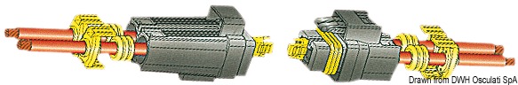Ένας πλήρης συνδετήρας αποτελείται από: συνδετήρα + 2 αρσενικά faston 14.231.20/40 + 2 θηλυκά faston 14.231.0/30 + 4 ούπα με στεγανωτικό του κατάλληλου τμήματος 14.232.01/02.