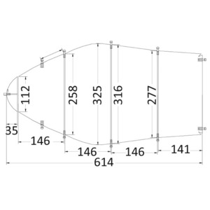 Κατασκευασμένο από πολυεστερικό ύφασμα με αδιάβροχη επίστρωση πολυουρεθάνης, ελαστική περίμετρο για καλύτερη προσκόλληση στις πλευρές του σκάφους. Ανθεκτικό στις υπεριώδεις ακτίνες Διπλή ραφή, περίμετρος για να τεντώνει ο μουσαμάς.