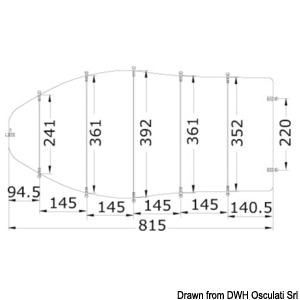 Κατασκευασμένο από πολυεστερικό ύφασμα με αδιάβροχη επίστρωση πολυουρεθάνης, ελαστική περίμετρο για καλύτερη προσκόλληση στις πλευρές του σκάφους. Ανθεκτικό στις υπεριώδεις ακτίνες Διπλή ραφή, περίμετρος για να τεντώνει ο μουσαμάς.