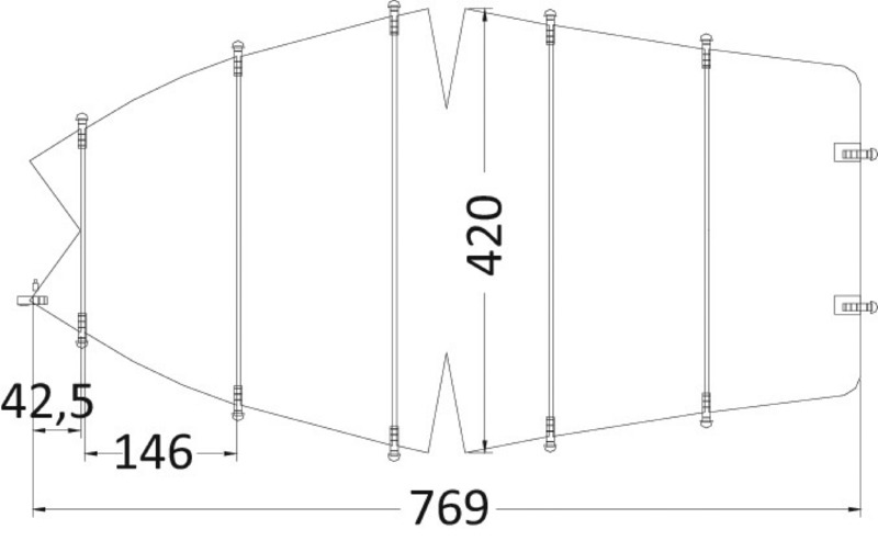 Κατασκευασμένο από πολυεστερικό ύφασμα με αδιάβροχη επίστρωση πολυουρεθάνης, ελαστική περίμετρο για καλύτερη προσκόλληση στις πλευρές του σκάφους. Ανθεκτικό στις υπεριώδεις ακτίνες Διπλή ραφή, περίμετρος για να τεντώνει ο μουσαμάς.