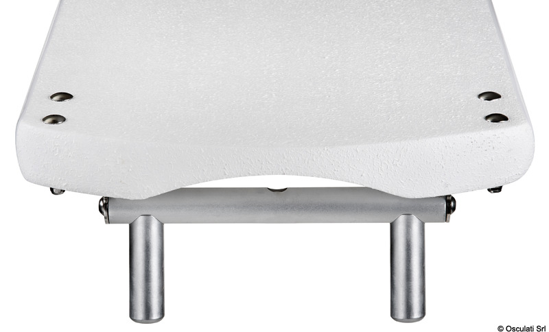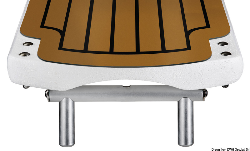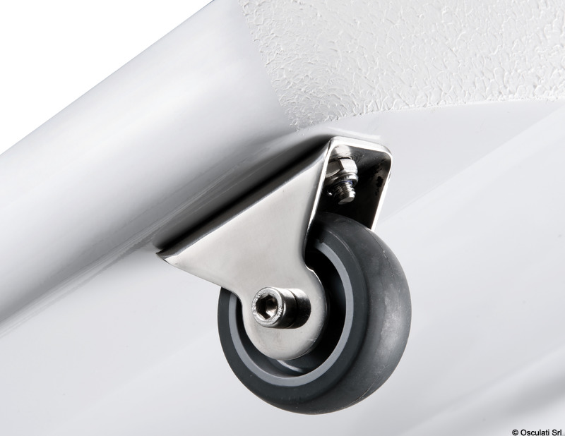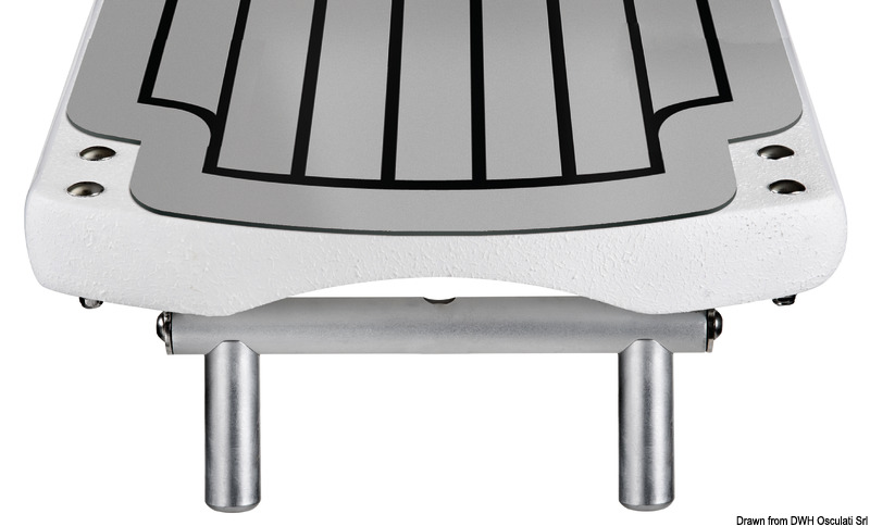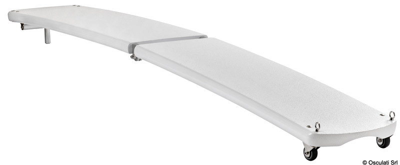 Δομή από πολυεπίπεδο άνθρακα με υποστηρικτικά προφίλ αλουμινίου. Ανοδιωμένες αρμοδιότητες αλουμινίου.Τροχοί με περίβλημα από ανοξείδωτο χάλυβα, με δακτυλίους που επιτρέπουν την ανύψωση του διαδρόμου.Εξοπλισμένο με διπλό περιστρεφόμενο πείρο. Μπορεί να τοποθετηθεί με έναν μόνο πείρο και το διάδρομο μπορεί να αιωρείται ή με δύο πείρους που επιτρέπουν μόνο κάθετη κίνηση (περιλαμβάνονται και οι δύο πείροι).