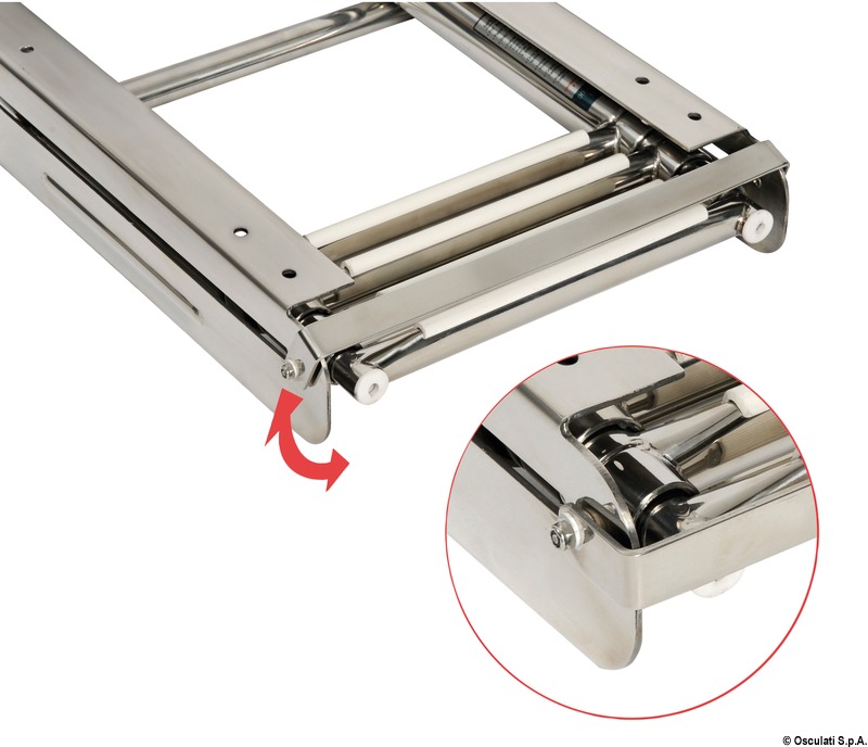 Κατασκευάζεται εξ’ ολοκλήρου από ανοξείδωτο χάλυβα στίλβωσης καθρέπτη. Οβάλ σκαλοπάτια με λευκή πλαστική πλατφόρμα, έκδοση εγκιβωτισμένη ,με εμπρόσθιο στόπερ.