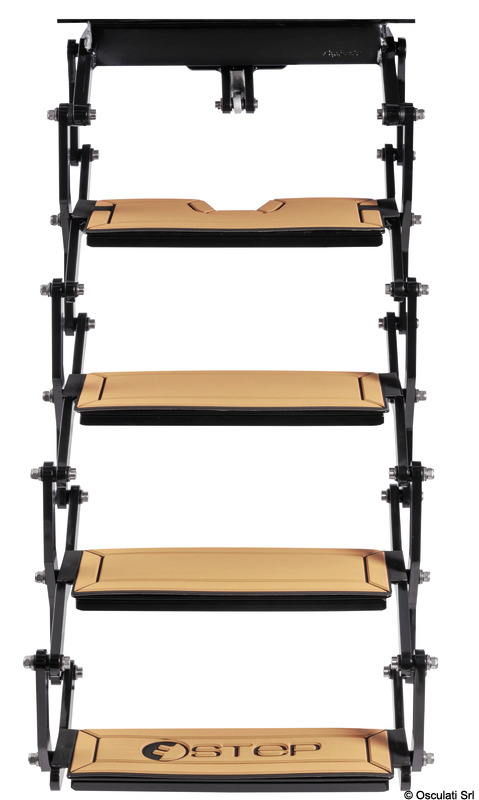 Ηλεκτρική σκάλα κάτω από την πλατφόρμα με καινοτόμο και ευρεσιτεχνημένο σύστημα παντογράφου.Κατασκευασμένη από ελαφρύ κράμα αλουμινίου για να εξασφαλίσει την κατάλληλη αντοχή με το ελάχιστο δυνατό βάρος, τα σκαλοπάτια είναι κατασκευασμένα από αντιολισθητικό EVA για να εξασφαλίσουν άνεση και ασφάλεια.Βαφή σε σκόνη σε γυαλιστερό μαύρο, διαθέσιμη σε δύο εκδόσεις: στάνταρ, με 3 ή 4 σκαλιά, και μεγάλη, με 4 σκαλιά.Η έκδοση large επιτρέπει στα μεγάλα σκάφη να έχουν μια θαλάσσια σκάλα και να χρησιμοποιούν τα σκαλοπάτια επίσης ως ξαπλώστρες, παραμένοντας μερικώς στο νερό.Το πρώτο σκαλοπάτι της σκάλας είναι σχεδιασμένο να προεξέχει προς τα εμπρός, επιτρέποντας την εγκατάστασή του πίσω από τον καθρέφτη της πλώρης.Η σκάλα «όλα-σε-ένα» με γρήγορη εγκατάσταση και κινητήρα IP69K παρέχεται με ειδικό πίνακα ελέγχου για τη λειτουργία.Εξαιρετικά ήσυχη και γρήγορη στην κίνηση ανοίγματος και κλεισίματος, απαιτεί μόνο 12 δευτερόλεπτα για τον ολόκληρο κύκλο.Είναι ένα κατοχυρωμένο και καινοτόμο προϊόν, 100% Made in Italy, που γεφυρώνει το χάσμα μεταξύ των μηχανικών σκαλών αναρρίχησης και των ακριβών ηλεκτρικών πασαρέλων.Πιθανές προσαρμογές κατόπιν αιτήματος: χρώμα σκαλοπατιών.