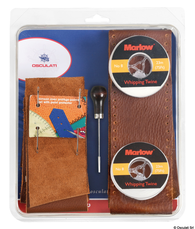 Kit για την δερμάτινη επένδυση πηδαλίου με σωλήνα από διάμετρο 22 mm και μέχρι τροχούς με διάμετρο 120 cm.Εκθετικό Blister που περιέχει τα απαραίτητα για την κάλυψη των πηδαλίων στο δέρμα. Μπορείτε να επιλέξετε την πλευρά που πρόκειται να ραμμένο για να έχετε την απαλή λεία ή καστόρινη αφή.To κιτ περιλαμβάνει: -- n ° 2 λωρίδες προ-τρυπημένου δέρματος με ραφή στο κέντρο της ρόδας προκατασκευασμένο.n ° 2 κουβαρίστρες σχοινάκι Marlow,- n ° 2 βελόνες,- n ° 1 σουβλί για τρύπες.