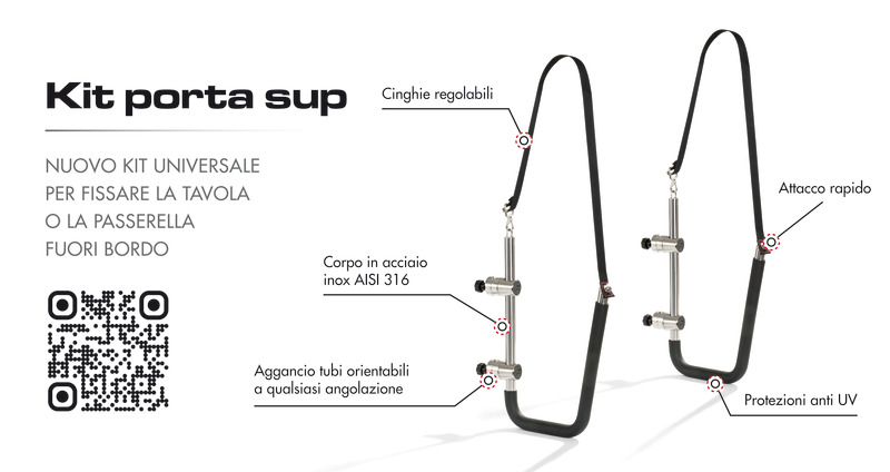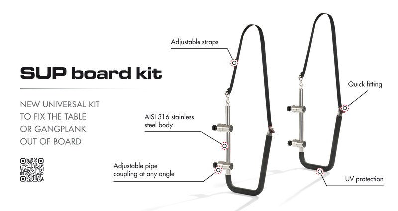 Μέσω αυτού του κιτ μπορείτε να στερεώσετε την σανίδα ή την εξωλέμβια πασαρέλα.Στερεώνεται στον χειρολισθήρα χάρη στους ρυθμιζόμενους ανοξείδωτους σφιγκτήρες σε 360°.Το σύστημα γρήγορης απελευθέρωσης των λαβών επιτρέπει σε κάθε βραχίονα να περιστρέφεται αμέσως όταν δεν χρησιμοποιείται ή να περιστρέφεται σε πιο στενή γωνία για να ταιριάζει καλύτερα σε SUP ή σε πιο στενά πεζοδρόμια.Κάθε βραχίονας διαθέτει προστασία από αφρώδες PVC υψηλής έντασης, που προστατεύει το SUP ή τη γέφυρα από τριβές και διαθέτει ρυθμιζόμενους και εύκολα αφαιρούμενους ιμάντες.Standard Version: ταιριάζει σε σωλήνες μεταβλητής διαμέτρου από 22 έως 30 mm με πλαστικά εξαρτήματα στερέωσης.Έκδοση Delux: είναι κατάλληλο για σωλήνες μεταβλητής διαμέτρου από 20 έως 28 mm με εξαρτήματα στερέωσης από ανοξείδωτο χάλυβα AISI 316.