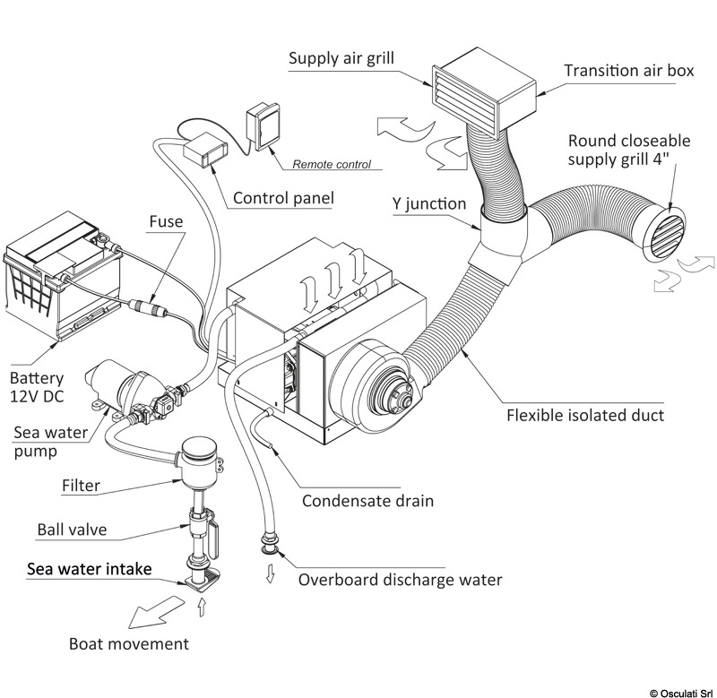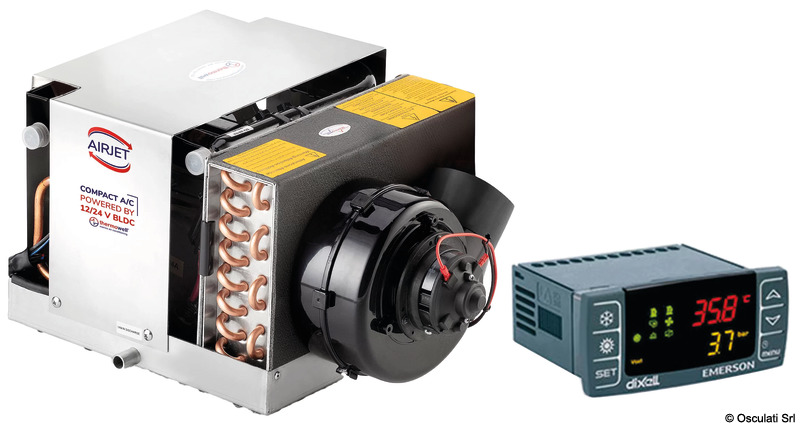 Το AirJet 12/24V DC είναι ιδανικό για την κλιματισμό σκαφών και αναψυχής πλοίων χωρίς γεννήτρια.Τροφοδοτείται απευθείας από τις μπαταρίες που βρίσκονται στο σκάφος, επιτρέποντας τη χρήση κλιματισμού χωρίς την ανάγκη για θορυβώδεις γεννήτριες ή σύνδεση σε αντιστροφέα.Με τον συμπαγή και κομψό σχεδιασμό του, το AirJet διακρίνεται για την υψηλή του ευελιξία, επιτρέποντας την εύκολη εγκατάσταση χωρίς να θυσιάζει μεγάλους όγκους.Είναι ιδανικό για την ψύξη μεμονωμένων καμπίνων.Όταν το σκάφος είναι δεμένο στο λιμάνι, είναι ακόμα δυνατό, χρησιμοποιώντας το κατάλληλο κιτ (προαιρετικό), να συνδεθεί στην προβλήτα και να επωφεληθεί από την τροφοδοσία 220V, εξοικονομώντας τις μπαταρίες στο σκάφος.Αντλία θαλάσσης και πίνακας ελέγχου συμπεριλαμβάνονται.* Σετ διανομής αέρα και ανακυκλοφορίας θαλασσινού νερού OPTIONAL προς παραγγελία ξεχωριστά κωδικός 50.268.00 / 50.267.99