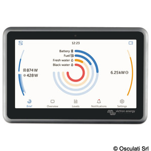 Provides control and monitoring of VICTRON devices also in remote mode. The data is read on the screen and can be sent to a computer remotely, with the help of an external router (WebBoat4G PLUS, not included) for both monitoring and configuration. These devices can interface with Inverter / Multi / Quattro / Skylla-i / Control panels / Battery monitor. The Ekrano GX model is an advanced energy control panel with a 7-inch touchscreen display, enabling remote monitoring and management of complex systems via VRM and VictronConnect. It offers easy installation and Bluetooth connectivity for quick setup.