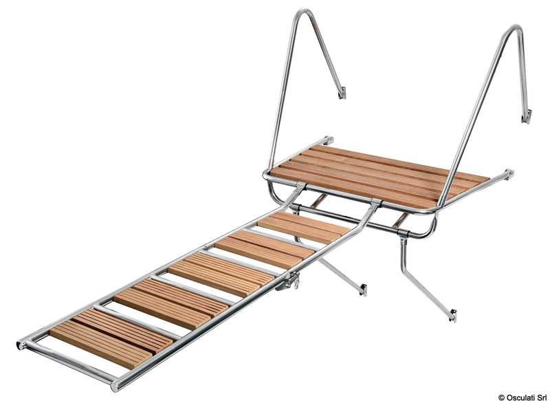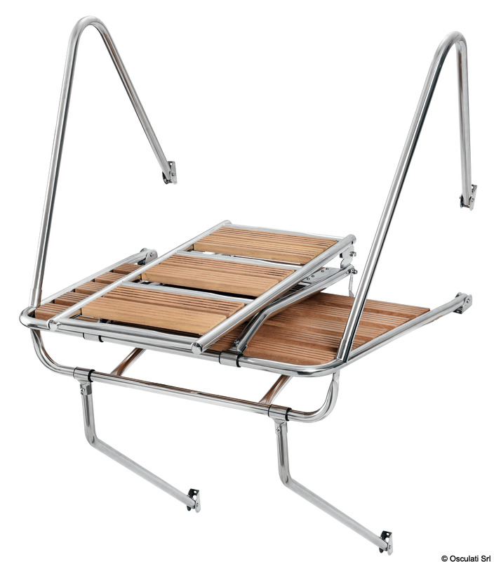 Fabricada en tubo de acero inoxidable de Ø de 25 mm, completa con rejilla de Iroko y todos los accesorios para la instalación.