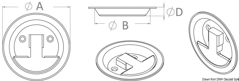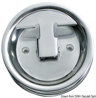 En inox AISI 316 poli miroir, avec contre-plaque de fixation, vis invisibles.