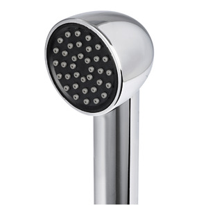 Boîtier douchette en acier inox AISI316 et capot auto-portant. Douchette Keji avec tête surdimensionnée et douille interne en caoutchouc anti-vibration.
