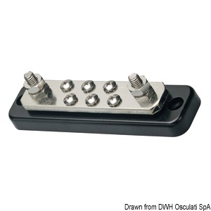 Base en plastique à haute capacité isolante. Base de support en cuivre nickelé, vis et écrous en inox. 12/48 V.