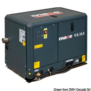 Système de refroidissement : le moteur est refroidi par du liquide de refroidissement en circuit fermé régulé par un échangeur de chaleur entre le liquide de refroidissement et l'eau de mer. Le refroidissement de l'air interne est quant à lui effectué par un échangeur air/eau de mer. Les flux générés garantissent un refroidissement efficace de l'alternateur et l'obtention de températures optimales pour le rendement et la fiabilité du groupe. Le système a l'avantage de garantir les meilleures conditions de fonctionnement quelle que soit la température ambiante du compartiment d'installation.