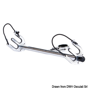 Bras en aluminium et étriers en inox 303. Protections en caoutchouc pour protéger les plate-formes et le bateau. Sandows UV résistants pour fixer les plate-formes.