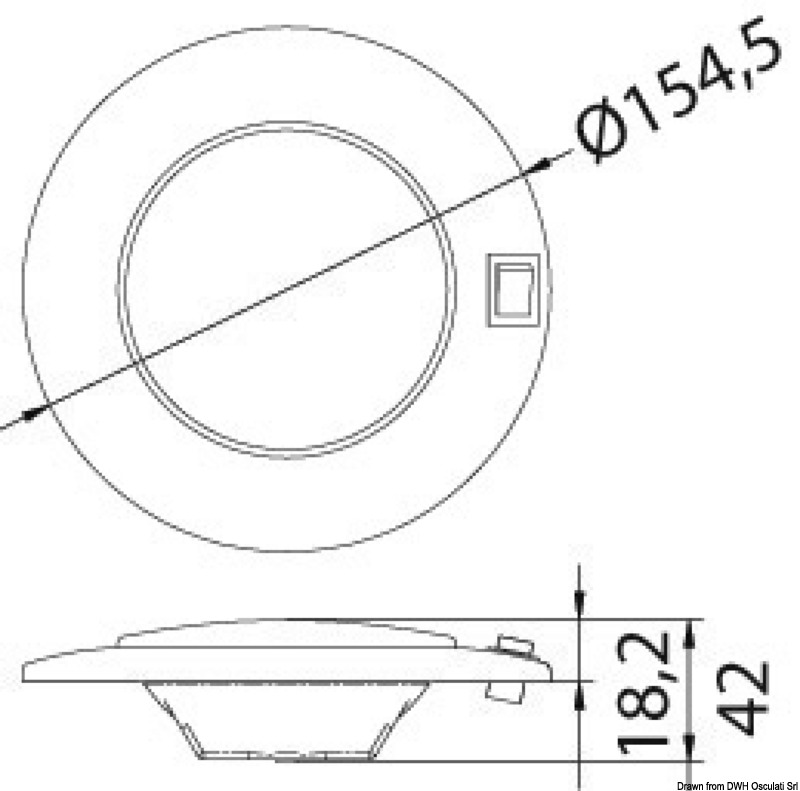 Tijelo od inoxa. Leća od polikarbonata iznutra obrađenog “punta di diamante” radi što bolje distribucije svjetlosti.