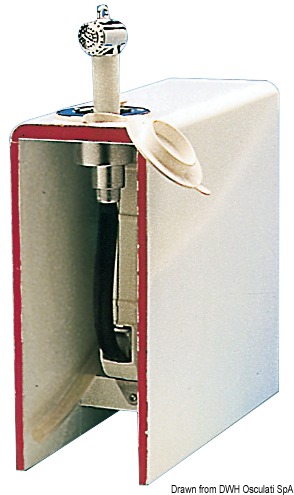 Tuš od kromiranog mesinga, automatski bubanj za namatanje cijevi ispod palube. Bubanj se može montirati ispod palube ili bočno na pregradu. Može biti i vidljivo izložen jer ima i ležište za slušalicu tuša. Izrađeno od ASA otporne na UV-zrake.