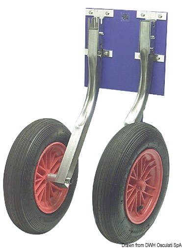 Sa okretljivim nogama, mogu ostati na krmi tijekom plovidbe. Cijevi (kvadratne) od inoxa, kotači uvećanih dimenzija 4x8”, plastične felge visoke otpornosti.