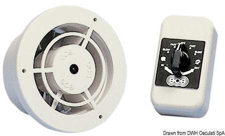 Predviđen za ugradnju u odzračivače Tannoy 53.500.00; 53.500.01. Model sa plastičnim kučištem niskog profila. Dvije brzine, univerzalno napajanje na 12/24 V. Kompletan sa prekidačem sa kabelom.