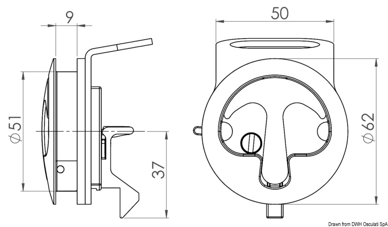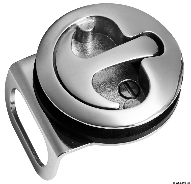 Izrađen od sjajnog inoxa AISI 316.Zatvarač se otvara izvana pomoću ručke u obliku sidra s povratom na oprugu. S unutrašnje strane ručka pod kutem omogućava otvaranje vratiju i ima malu polugicu za blokiranje otvaranja.Sa sigurnosnim sistemom za odblokiravanje i izvana ukoliko je to potrebno.