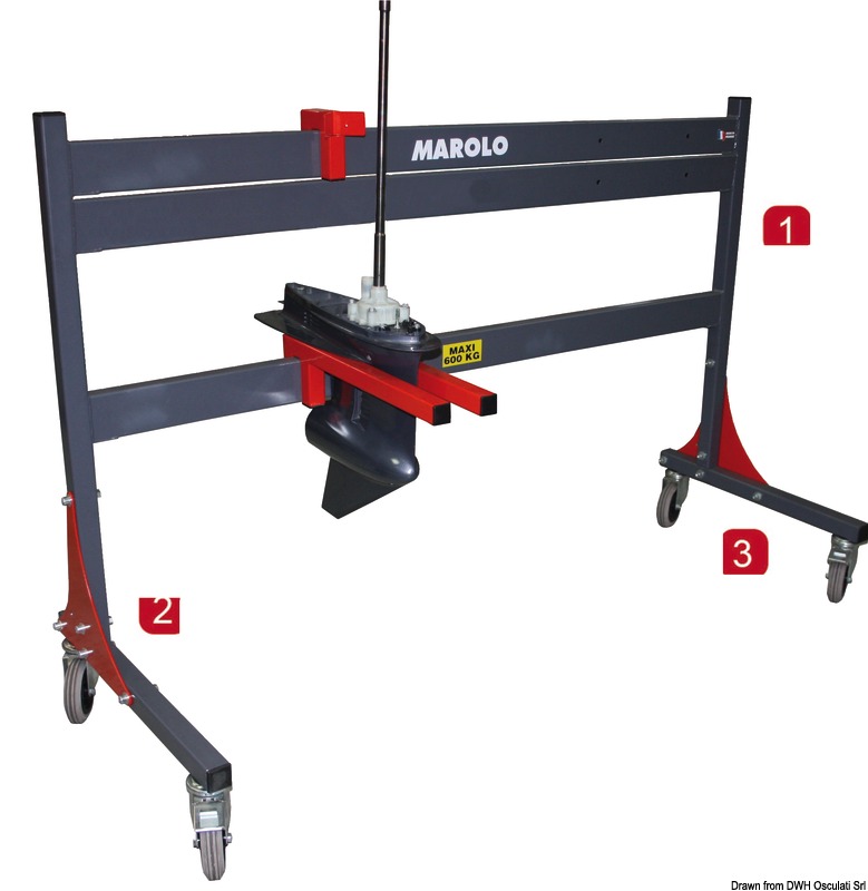 Nosivost 500 kg.2 nivoa za prislon (1);Vijci od inoxa (2);4 okretljiva kotača od kojih 2 s kočnicom (3).