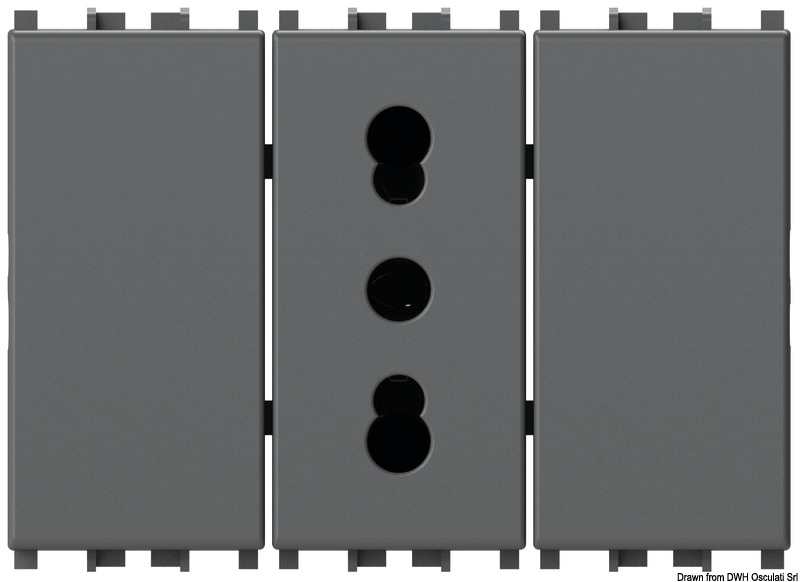 Sastoji se od od jedne utičnice i dva poklopca za otvor koji se po potrebi mogu skunuti.Kompatibilne VIMAR®.