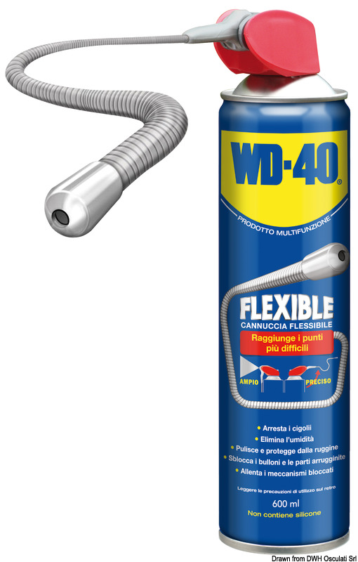 WD-40 Proizvod Multifunkcionalan štiti metal od hrđe i korozije, podmazuje dijelove koji su blokirani, odstranjuje i štiti od vlage bilo koju površinu. Odstranjuje čak mrlje od masti, katrana i ljepila sa bilo koje neporozne površine.