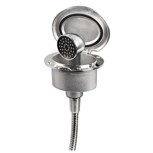 Kutija za tuš od inoxa AISI 316 sa samodržećim vratašcima. S tušem Keji II Continuum Flow s ojačanom glavom i unutrašnjim ležajem od antivibracijske gume.