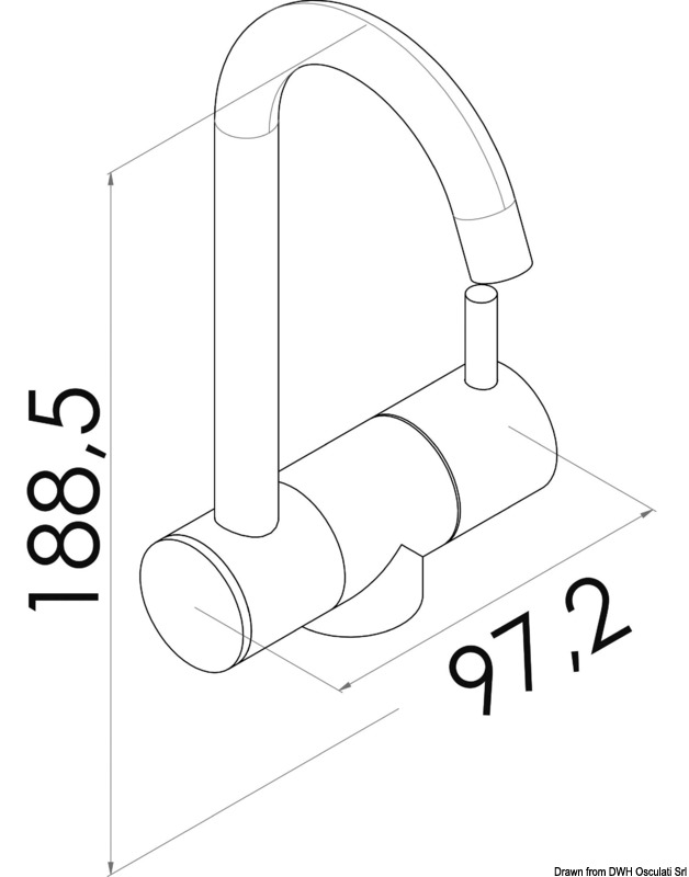 U kromiranom mesingu. Može se montirati unutar sinka kako bi se dobila potomno glatka površina. Mogućnost instalacije na vertikalnom zidu.
