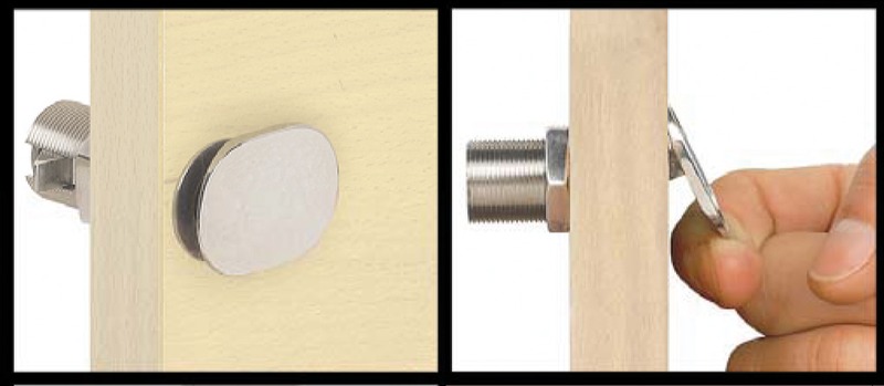 Univerzalno zatvaranje koje ostaje gotovo u ravnini s pločom. Pogodno za ladice i vrata, čak i teška, jer pruža izvrsno držanje. Izrađeno od nehrđajućeg čelika + kromiranog mesinga.