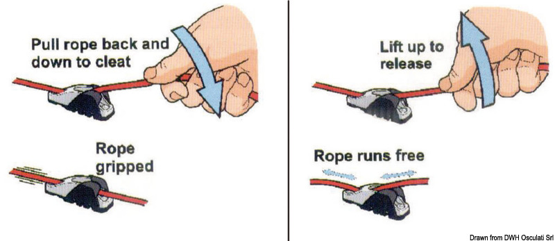 Sprječava slučajno otpuštanje škote i obrnuto omogućuje slobodno klizanje škote.