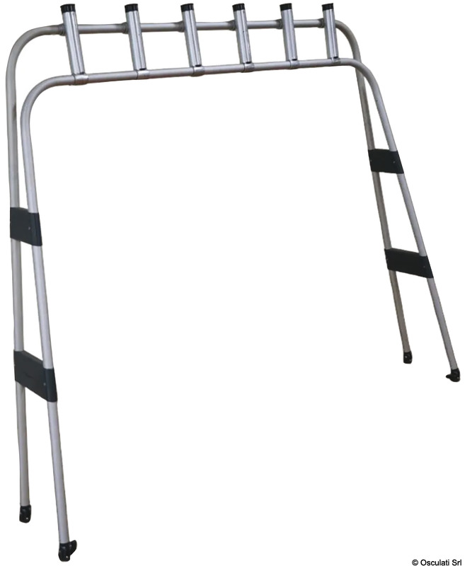Izrađen od aluminijskih cijevi promjera 32mm i debline 1,6mm.Omogućuje siguran i stabilan smještaj 6 ribarskih štapova.Kompletan s bazama za fiksiranje od crnog najlona.