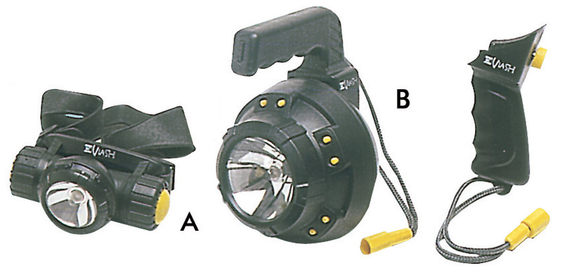 Kompletno vodonepropusne (isprobane do 10 metara pod vodom). Vanjsko kučište od mekane gume sa zaštitom od udaraca, žarulje crypton sa parabolom visoke efikasnosti.A) Model anatomski za ručnu upotrebu ili za montiranje na čelo pomoću posebne trake od kaučuka.B) Model TORPEDO visoke autonomije, sa dvostrukom ručkom tipa "sub" ili ravnom.