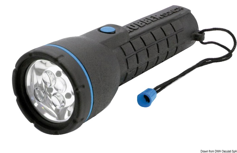 LED baterijska lampa otporna na špricanje, sa kučištem od prirodne gume otporne na udarce. sa 3 LED-a visokog intenziteta tipa ULTRA BRIGHT i optičkom lećom.