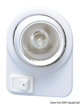 Plafonjera halogena od bijele plastike, sa okretljivim reflektorićem i prekidačem.