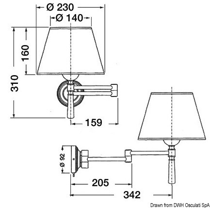 Zglobna svjetiljka od mesinga. Plašt od svile, nosač žarulje E14 za žarulje mignon od 40 watta (nije uključena).