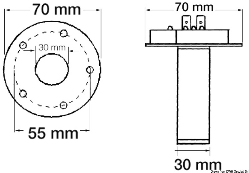 Frekvencija 4-20 mA, specifični za upotrebu sa instrumentima VDO 27.485.01/27.585.01. Signal alarma na 80%. Flanđa standardna sa 5 rupa.