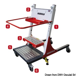 Appoggio motore regolabile in altezza con alette in acciaio inox (1);