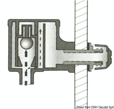 Questo innovativo prodotto permette la fuoriuscita dell’aria ma non del carburante, per cui sono eliminate per sempre le striature sulla fiancata dovute a questo problema. Evita inoltre assolutamente l’entrata dell’acqua dallo sfiato ed é progettato in modo da emettere un "gorgoglio” quando si approssima il carburante, fornendo un segnale sonoro che testimonia "il pieno”. Portagomma da 16 mm. Conforme RINA e CE.