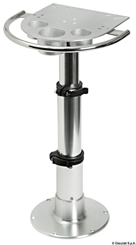 Fabbricata in alluminio anodizzato + maniglione in acciaio inox AISI 316. Predisposta per essere installata su nostro supporto tavolo 48.720.01 fornisce un solido appoggio per i tavoli ribaltabili. Equipaggiata da 2 vani porta-lattine/bicchieri + 1 vano porta-bottiglie utilizzabili con il tavolo chiuso.