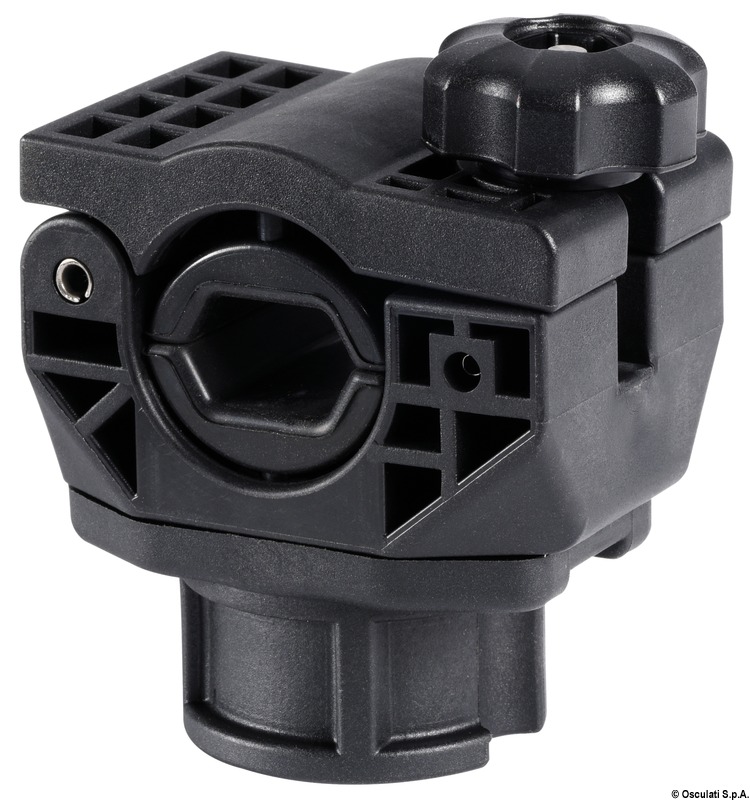 Rotazione orizzontale 360° e verticale 90° con sistema di innesto nella base a scatto.Blocco della canna con ghiera rotante.