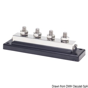 Base plastica ad alta capacità isolante. Barra di supporto in rame nichelato, viti e dadi in acciaio inox. volt 12/48.
