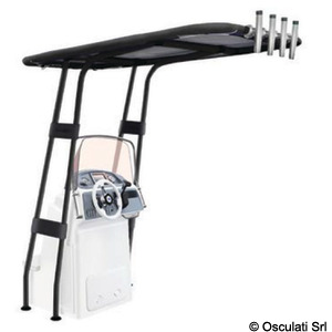 Fabbricato in tubo Ø 44 mm, con raccordi in resina ad alta resistenza e parti saldate di altissima qualità. Universale in quanto gli attacchi alla console possono essere regolati a piacere. Il tessuto del T-Top è poliestere ATLAS impermeabile ed UV resistente 400 g/m2.